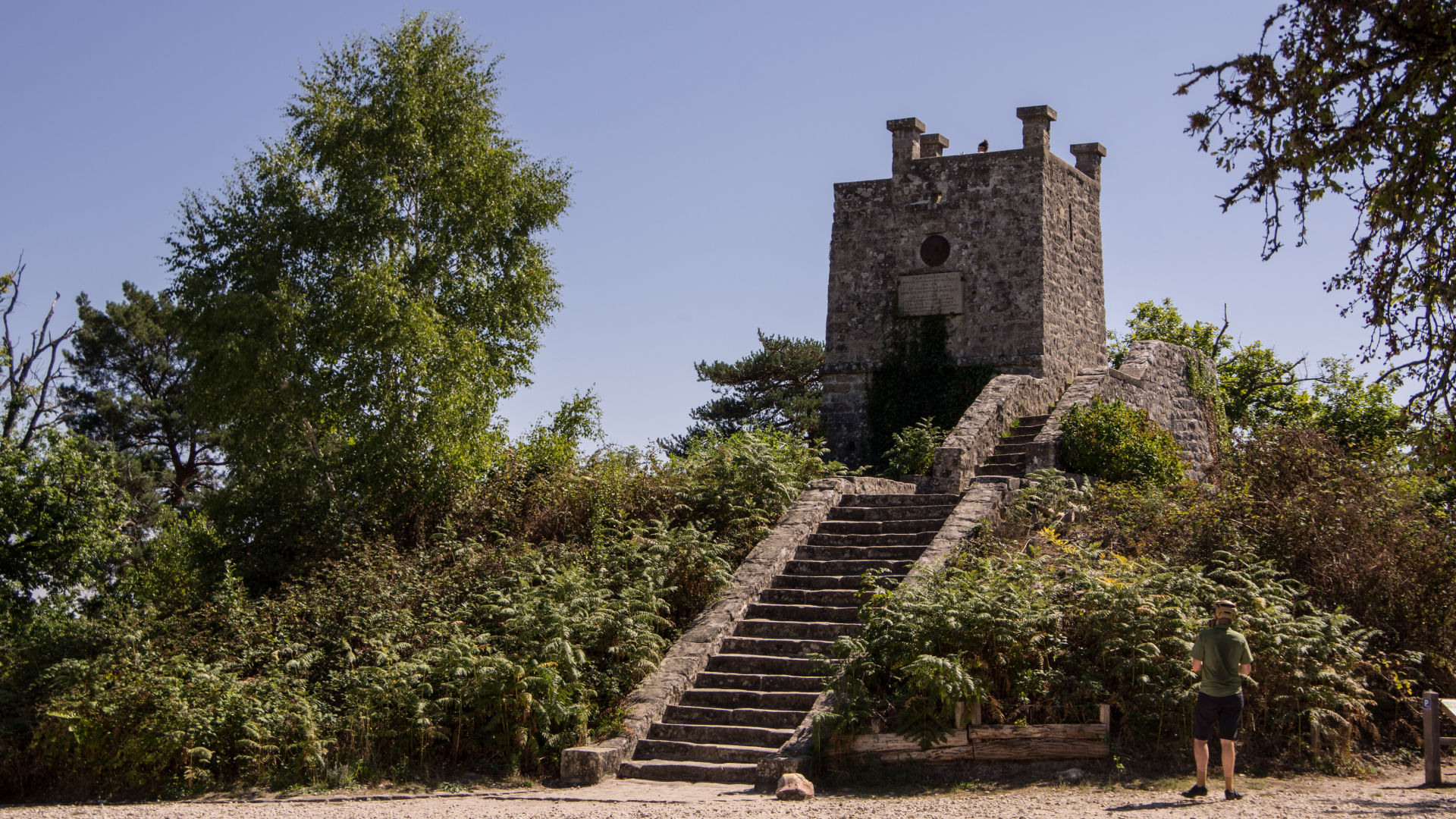 Demi-tour sur le sentier bleu n°2 pour découvrir les quelques fontaines qui le bordent pour mieux ensuite monter vers la Tour Dennecourt (sans rater l'embranchement sur la route, mais ce n'est pas bien grave, tous les sentiers mènent à la tour !)