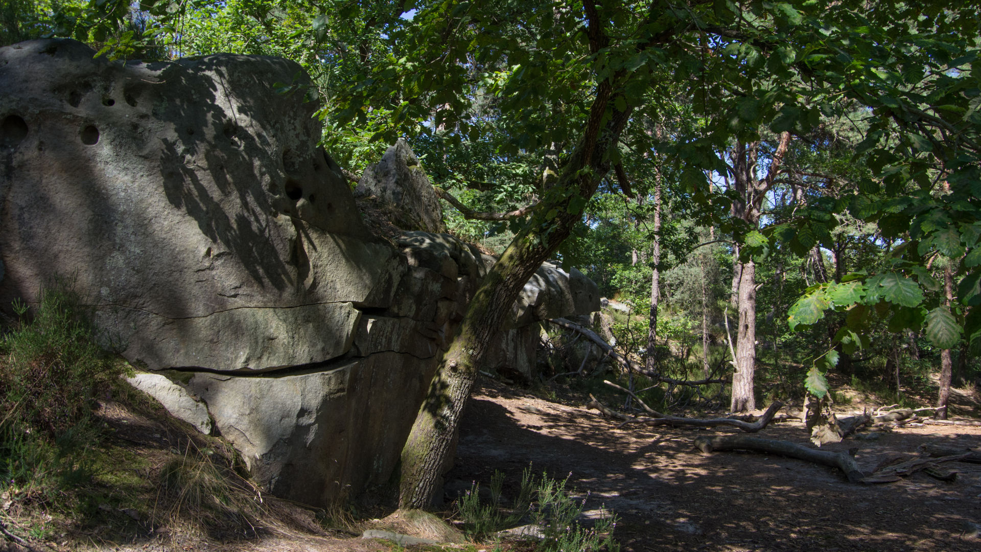 Le soleil étant bien présent et la chaleur aussi, il fait bon suivre le circuit à l'ombre. Le cheminement dans les rochers du Mont d'Ussy est un petit bonheur, depuis toujours, je ne peux que le recommander. D'ailleurs, il est recommandé aussi d'y aller avant que la peinture disparaisse...